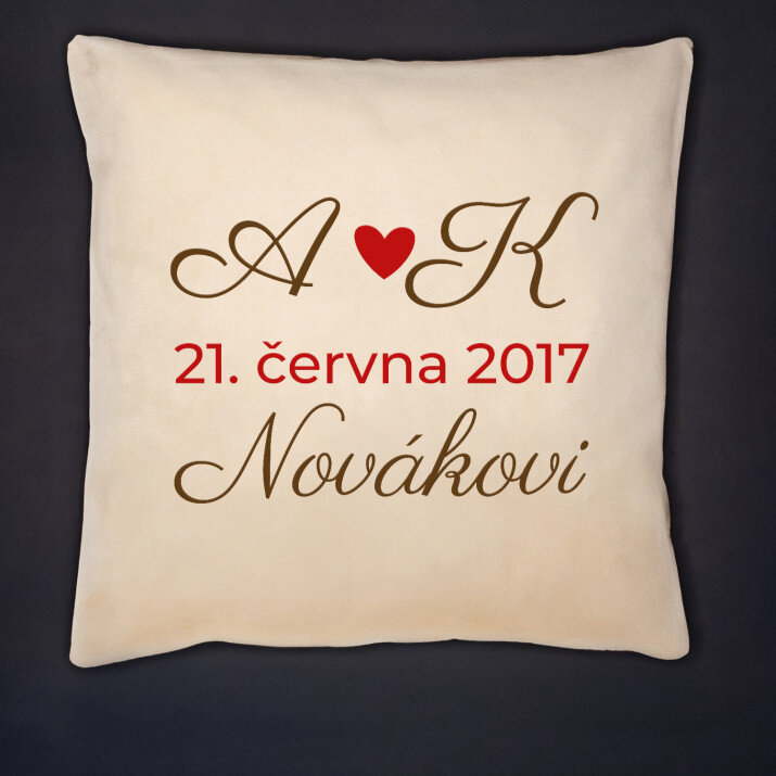 Dekorativní polštář s jmény a datem je krásnou ozdobou. Personalizace a kvalita provedení dělají dojem.