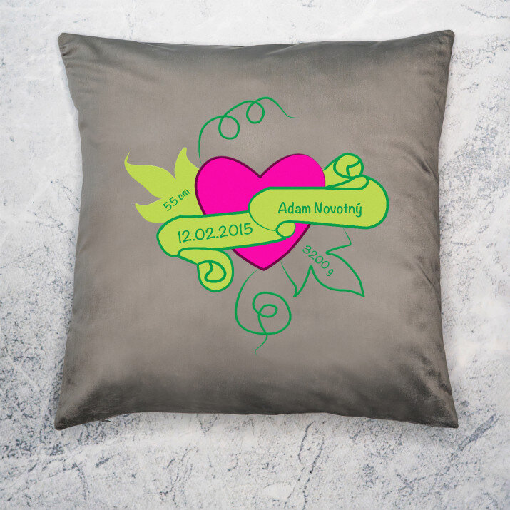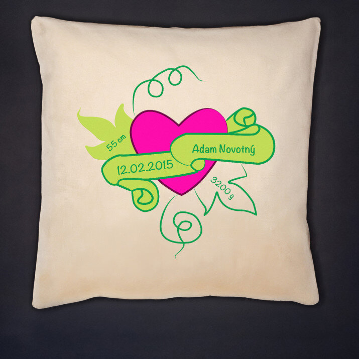 Dekorativní polštář s jmény a datem je krásnou ozdobou. Personalizace a kvalita provedení dělají dojem.