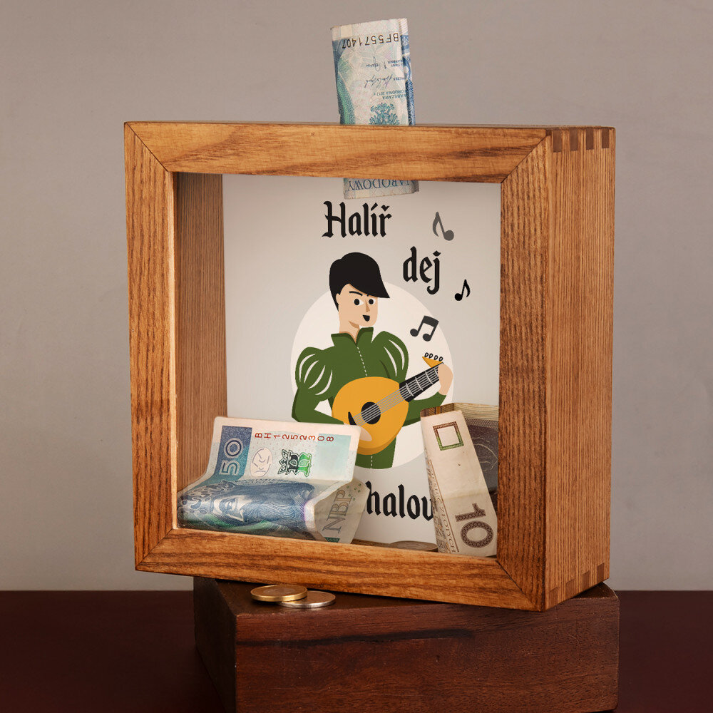 Jedinečná dřevěná pokladnička vyrobená z mořeného a lakovaného jasanového dřeva. Na přední straně je sklo, díky kterému budou úspory dobře viditelné! Díky své jednoduché a elegantní formě se hodí do každého interiéru. Pokladnička má odnímatelnou zadní část, což umožňuje její snadné otevření kdykoli. Personalizovaný potisk umožní ještě více přizpůsobit dárek obdarované osobě a příležitosti!