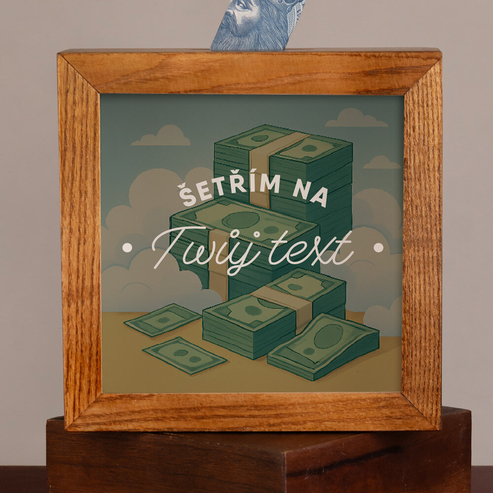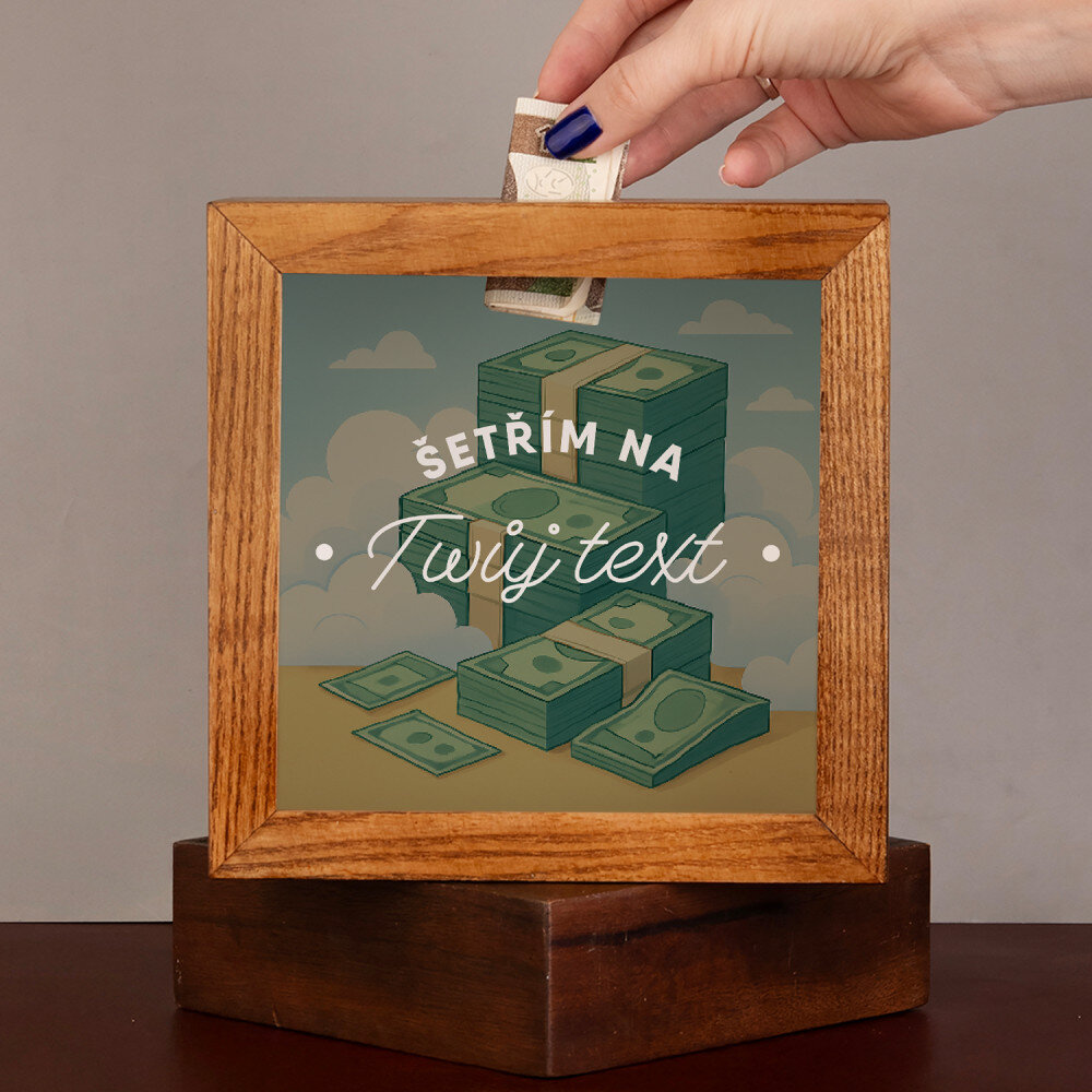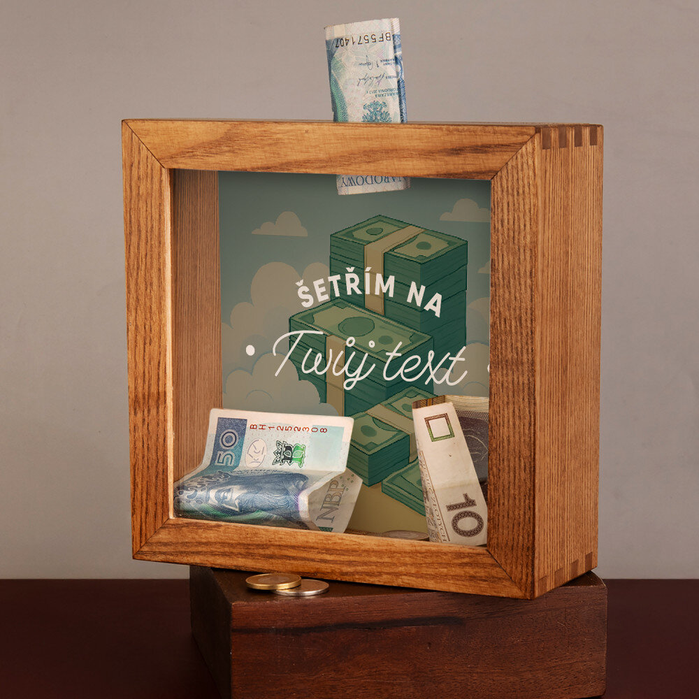 Jedinečná dřevěná pokladnička vyrobená z mořeného a lakovaného jasanového dřeva. Na přední straně je sklo, díky kterému budou úspory dobře viditelné! Díky své jednoduché a elegantní formě se hodí do každého interiéru. Pokladnička má odnímatelnou zadní část, což umožňuje její snadné otevření kdykoli. Personalizovaný potisk umožní ještě více přizpůsobit dárek obdarované osobě a příležitosti!