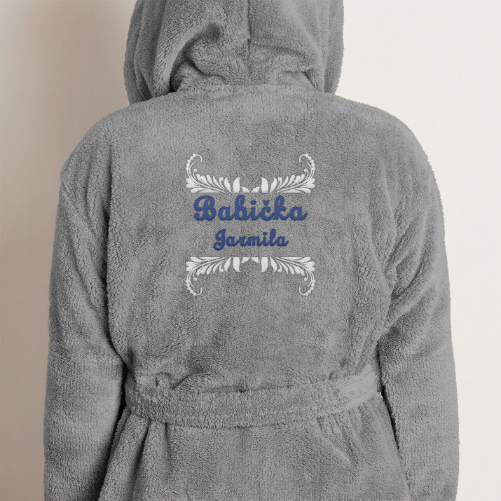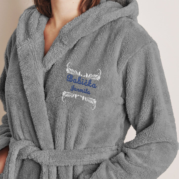 Univerzální fleecový župan v šedé barvě je vyroben ze 100% polyesteru wellsoft. Pohodlný, hezký, heboučký - zajistí dokonalý komfort, když už budou všechny starosti dne budou pryč a přijde čas na relax. Příjemně zahřeje i rozespalé tělo hned po probuzení. Župan je zdoben personalizovanou výšivkou, která nejen činí z výrobku perfektní dárek, ale také pěkně vypadá a dokáže zvednout náladu nositele.Župan má elegantní střih s kapuci a kapsami, tak bude ideální na večerní módní prohlídku domácího oblečení. Univerzální velikost, gramáž 300 g/m2. Unisex.
