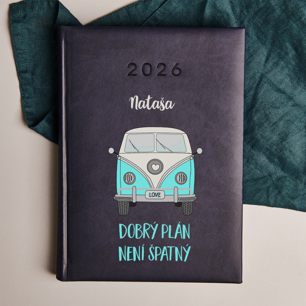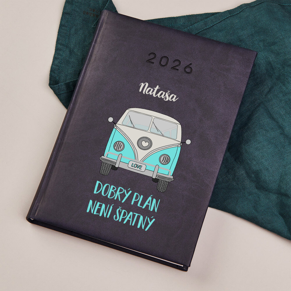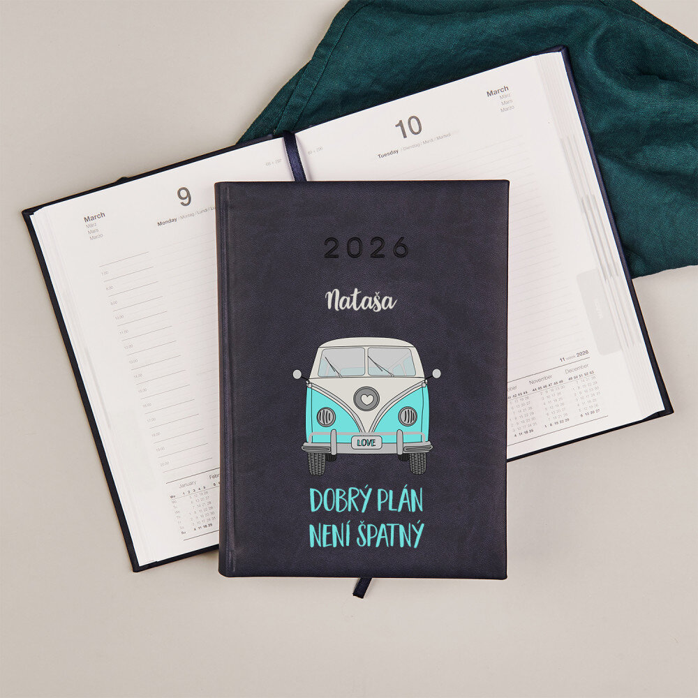 Vysoce kvalitní kalendář ve stylu knihy ve formátu A5.Vazba z sametově měkkého, příjemného matného materiálu.