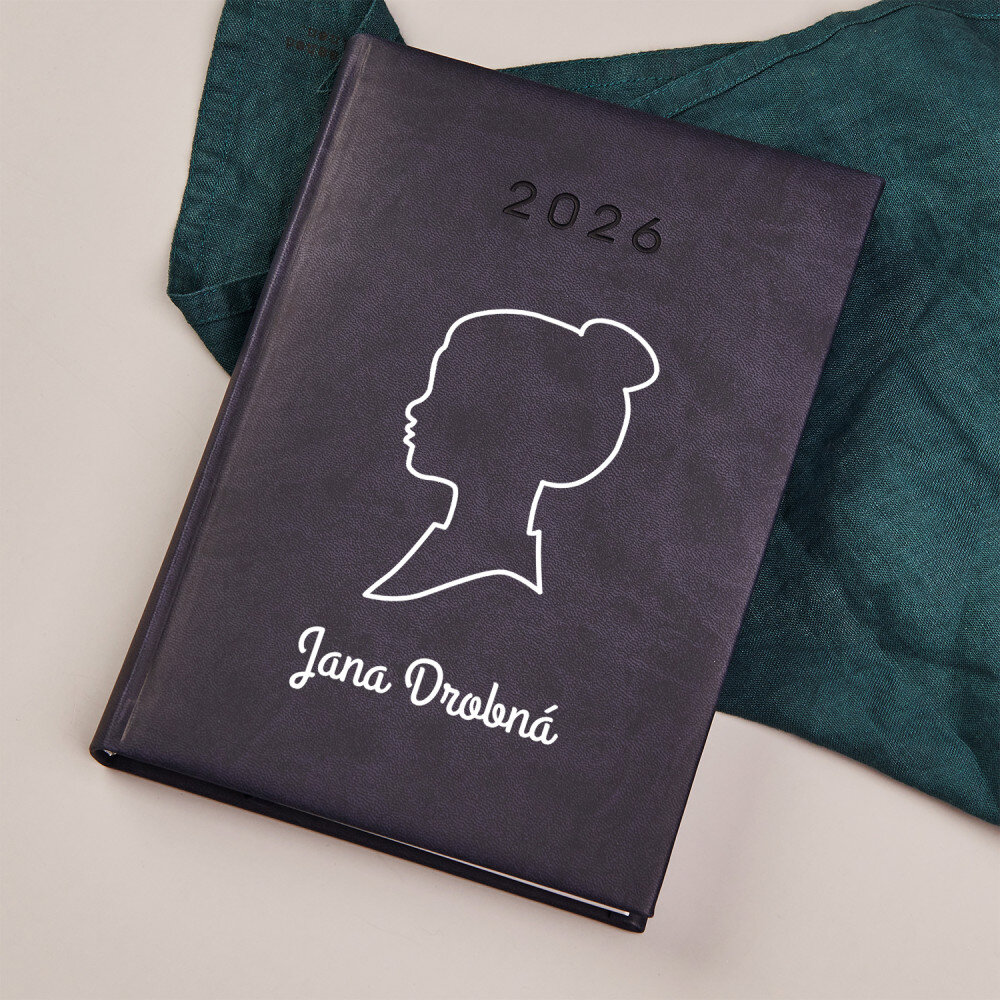 Vysoce kvalitní kalendář ve stylu knihy ve formátu A5.Vazba z sametově měkkého, příjemného matného materiálu.