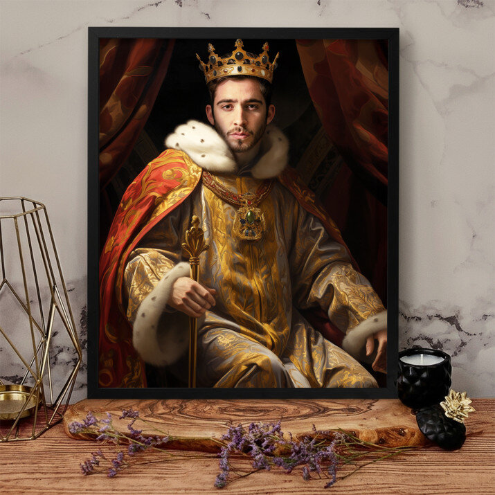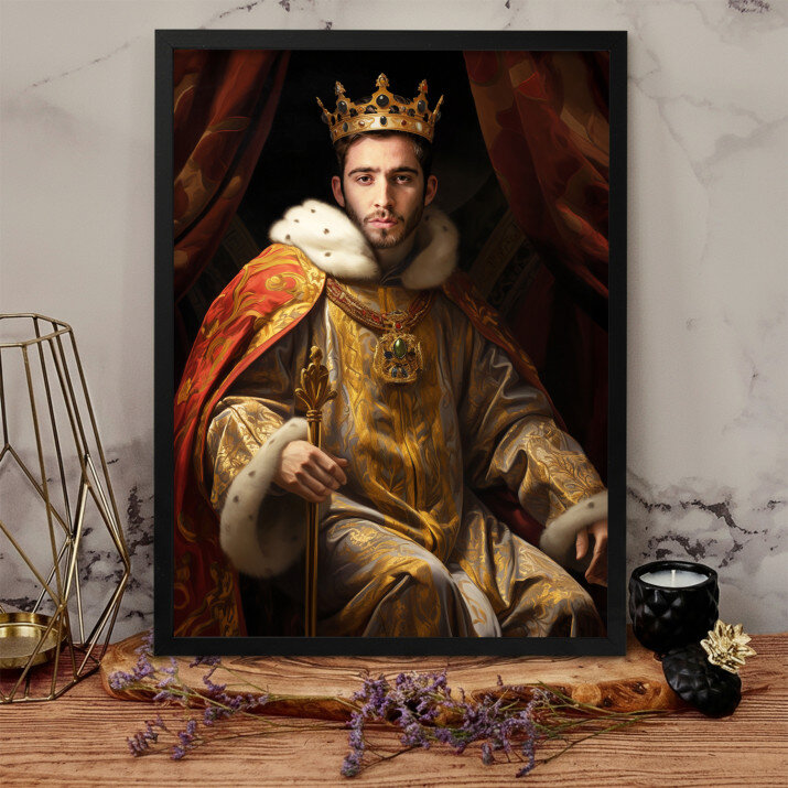 Staňte se hrdinou Královského Portrétu – jedinečného obrazu, který bude vytvořen z vaší fotografie. Jedná se o úžasný dárek, díky kterému se může milovaná osoba cítit jako princezna, generál nebo dokonce i král! Obraz bude vytvořen z vaší fotografie. Náš grafik Vám připraví profesionální projekt ve stylu dle vašeho výběru. Jakmile bude návrh schválen, vytvoříme dárek, který potěší vaše blízké!