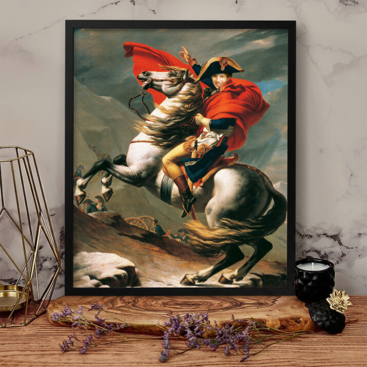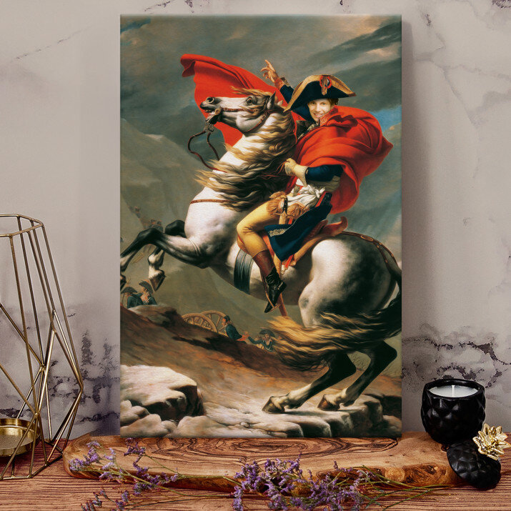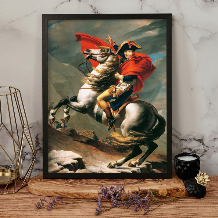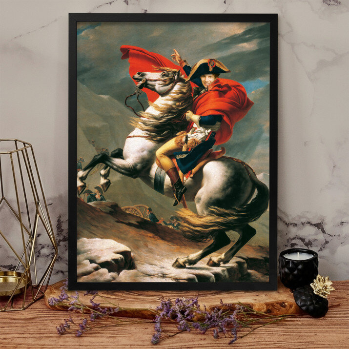 Tento obraz na plátně s portrétem Napoleona na koni je opravdovým uměleckým dílem. Jedinečný detail a sytost barev působí dojmem.