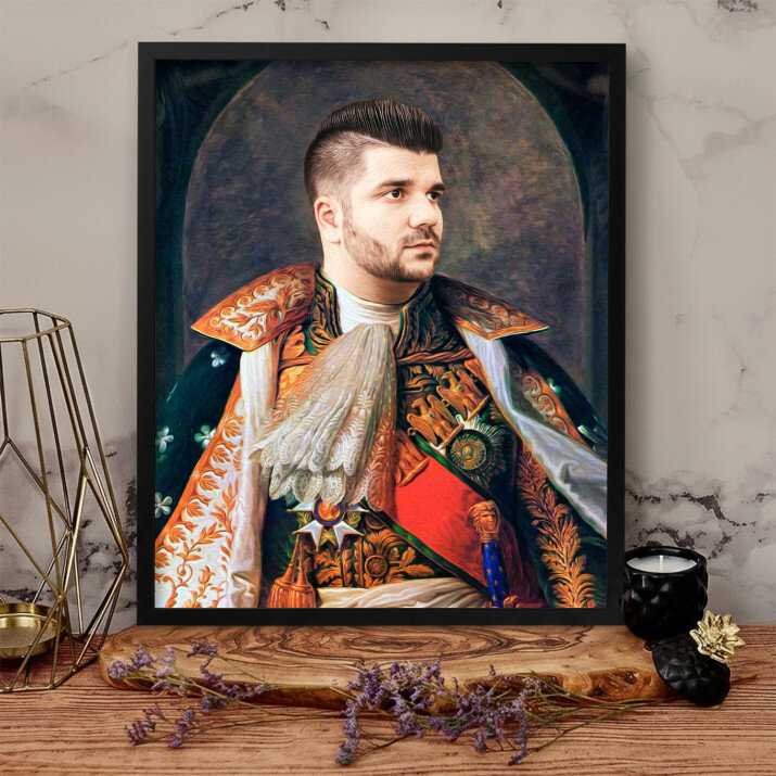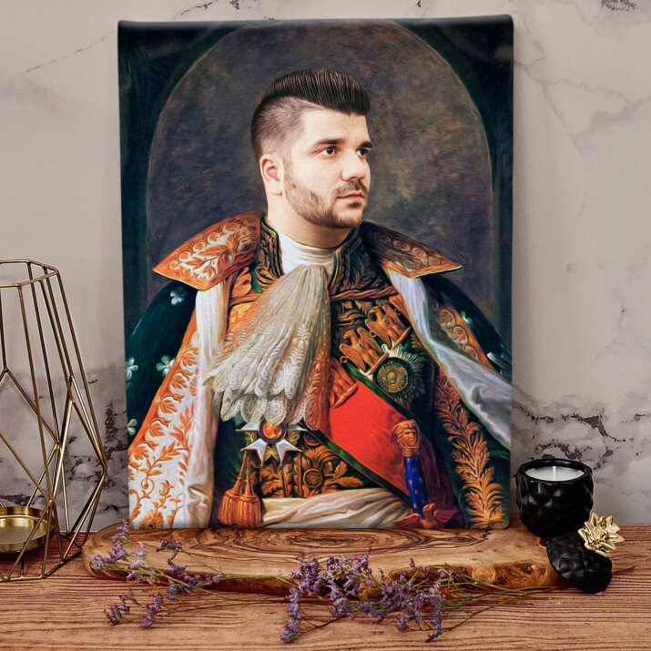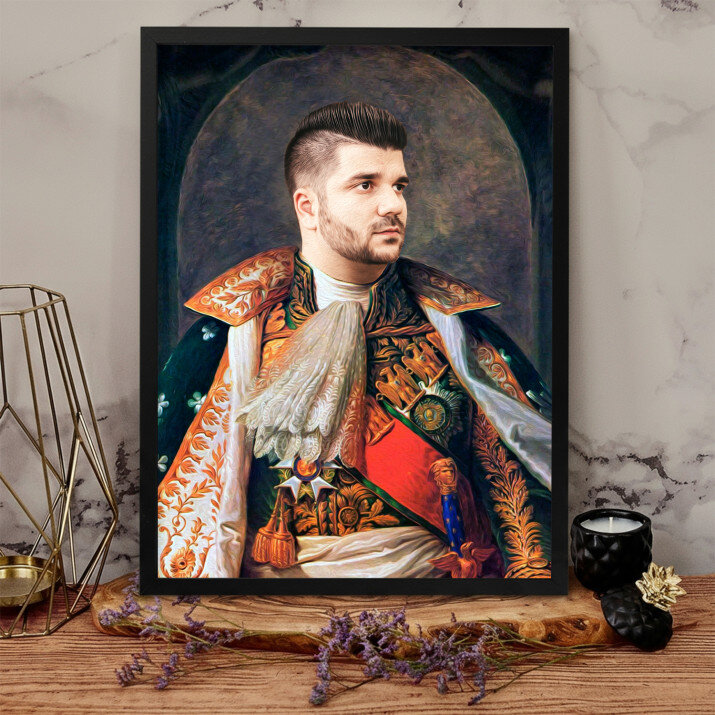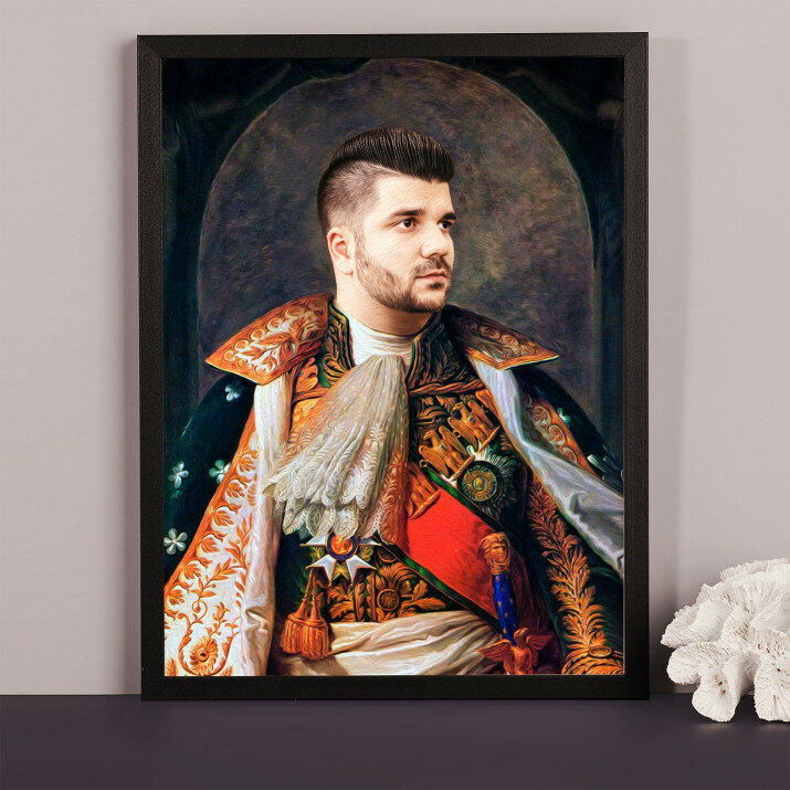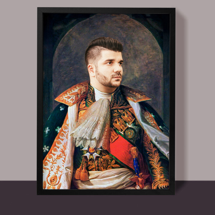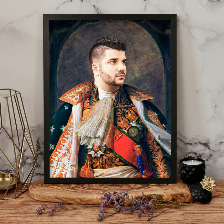 Staňte se hrdinou Královského Portrétu – jedinečného obrazu, který bude vytvořen z vaší fotografie. Jedná se o úžasný dárek, díky kterému se může milovaná osoba cítit jako princezna, generál nebo dokonce i král! Obraz bude vytvořen z vaší fotografie. Náš grafik Vám připraví profesionální projekt ve stylu dle vašeho výběru. Jakmile bude návrh schválen, vytvoříme dárek, který potěší vaše blízké!