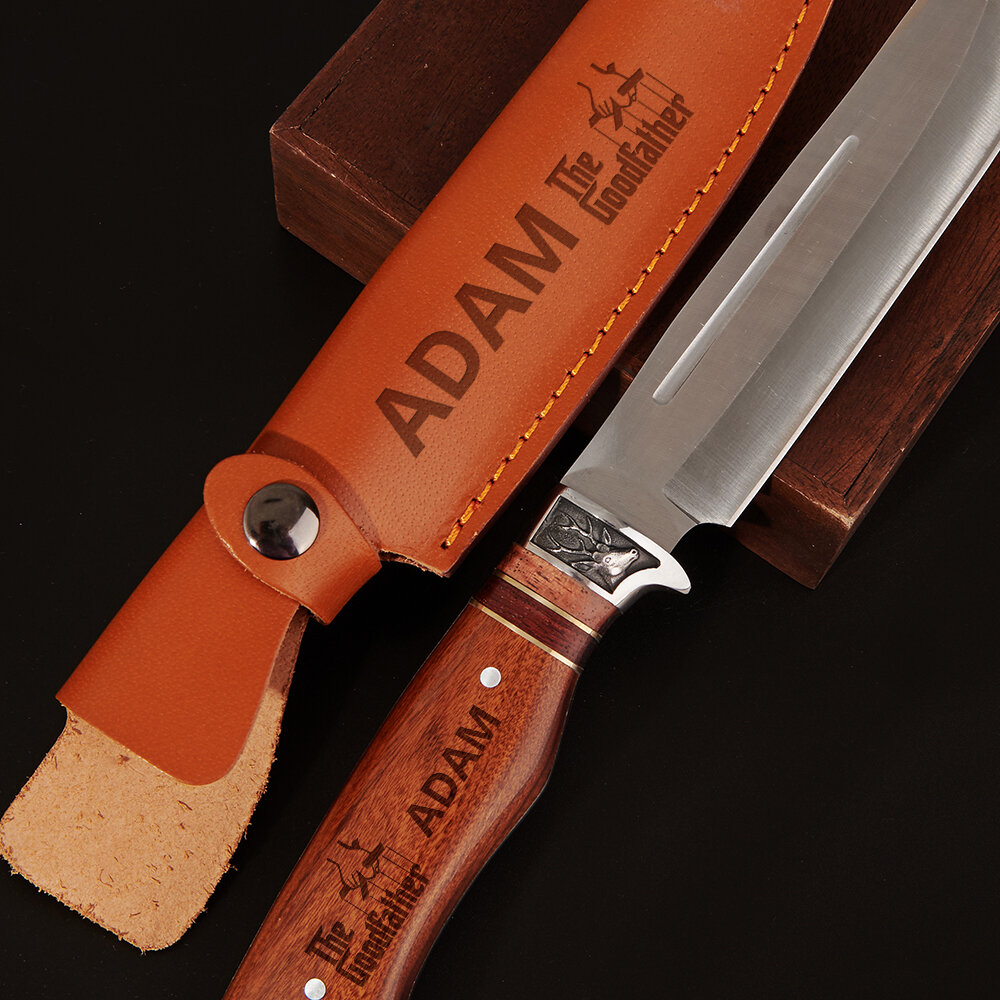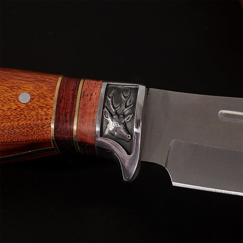 Lovecký jednočepelový nůž značky TASMAN. Má klasický, jednoduchý design a je pečlivě vyroben z vysoce kvalitního materiálu. Díky tomu nůž nikdy vás nezklame a bude fungovat za všech podmínek. Nůž má hnědou dřevěnou rukojeť a elegantní pouzdro z přírodní kůže. Personalizovaný vzor umístíme na rukojeť a pochvu.Specifikace: