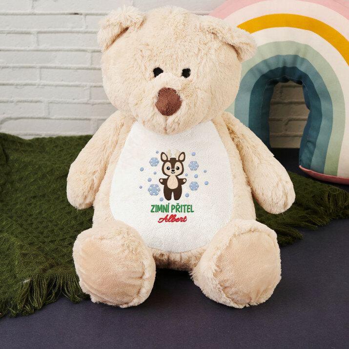 Velký a úžasně měkký plyšový medvídek, zdobený jedním z našich personalizovaných, vyšívaných vzorů. Složení: 100% polyester. Medvídek máunikátní zip, který umožňuje vyjmutí vnitřku a bezpečné čištění. Medvídek je bezpečný pro děti všech věkových kategorií. Ruční praní. Výška plyšáka: 45 cm.