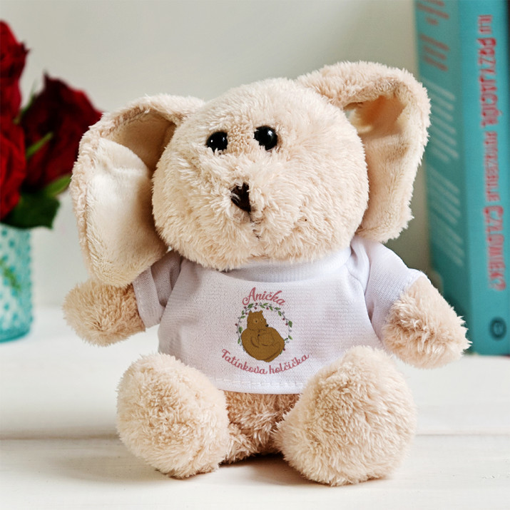 Plyšák s vlastním grafickým motivem na tričku. Měkká a příjemná na dotek hračka je vyrobena z plyšu, tričko z polyesteru. Potisk je permanentní, díky čemu zůstávají barvy pestré a výrazné! Dostupné druhy plyšáků:- Sloník – výška 16 cm