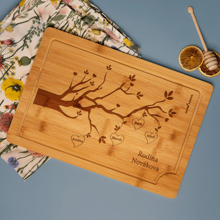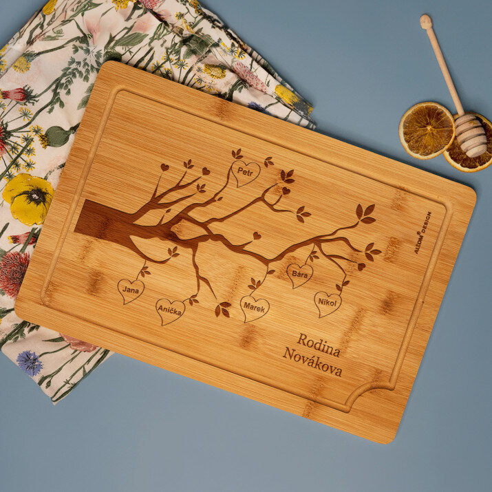 Prkénko Altom Design z vysoce kvalitního bambusu bude nepostradatelným pomocníkem v kuchyni. Jejího praktické rozměry poskytují dostatečný prostor pro krájení, sekání a podávání různých pokrmů. Prkénko vyniká nejenom krasným vzhledem, ale je také extrémně trvalé a odolné proti poškrábání. Přiložený ostřič vám navíc umožní udržovat nože v perfektním stavu naostření, což se promítá do přesnosti při přípravě pokrmů. Na povrch prkénka umístíme Vámi vybraný personalizovaný vzor.Rozměry prkénka: cca 37,5 cm x 25,5 cm x 1,5 cm