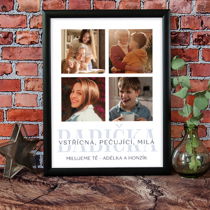 Krásná kompozice vašich fotek s pár slovy od srdce bude perfektním dárkem pro ty, se kterými máte spoustu vzpomínek. Stačí si vybrat oblíbené fotografie nejdůležitějších chvíl a vytvoříme pro vás památku, která obdarované osobě zůstane navždy. Je to také originální a efektní dekorace do bytu.POPIS PRODUKTU