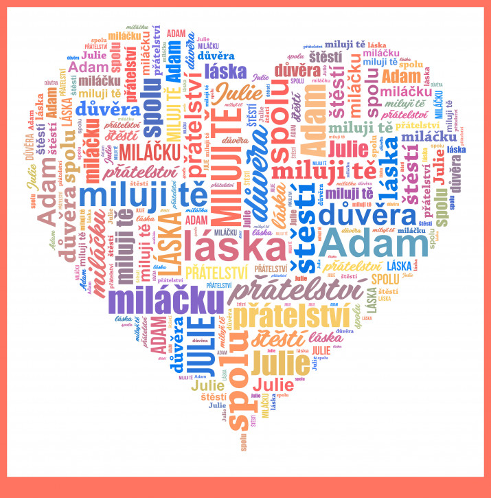 Obraz na plátně Slovo mrak je projekt, který tvoříme z vámi vybraných slov. Díky takovému dárku můžete poslat přání svým blízkým jedinečným způsobem. Personalizace obrázku umožňuje vytvořit unikátní a skvělý dárek.VLASTNÍ MOTIV