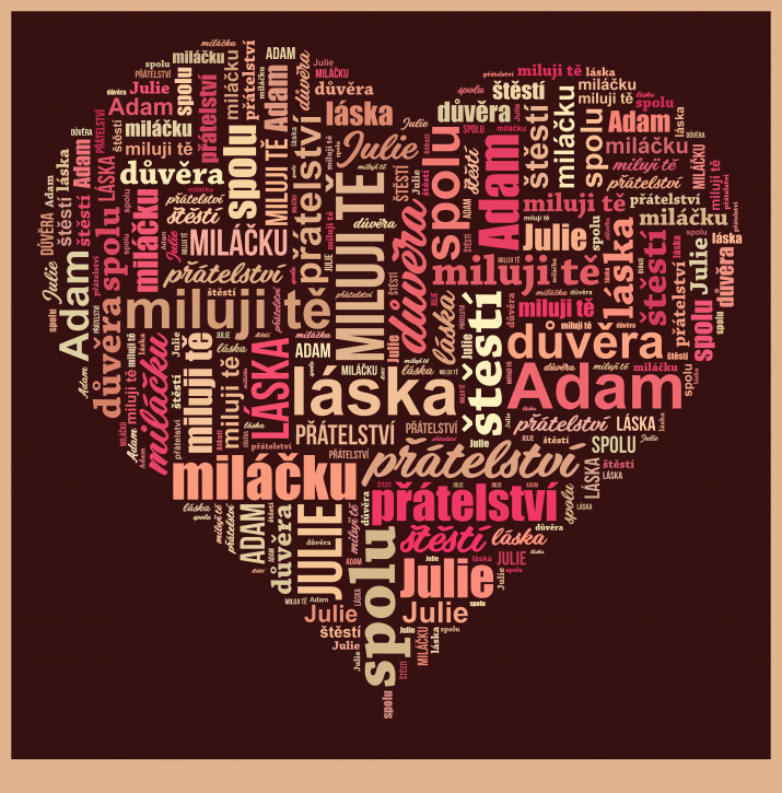 Obraz na plátně Slovo mrak je projekt, který tvoříme z vámi vybraných slov. Díky takovému dárku můžete poslat přání svým blízkým jedinečným způsobem. Personalizace obrázku umožňuje vytvořit unikátní a skvělý dárek.VLASTNÍ MOTIV
