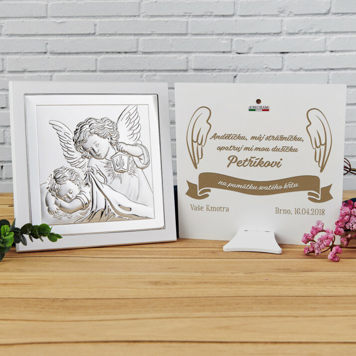 Andělíčku - Andílek s lucernou - Střibrný obrázek s gravírováním