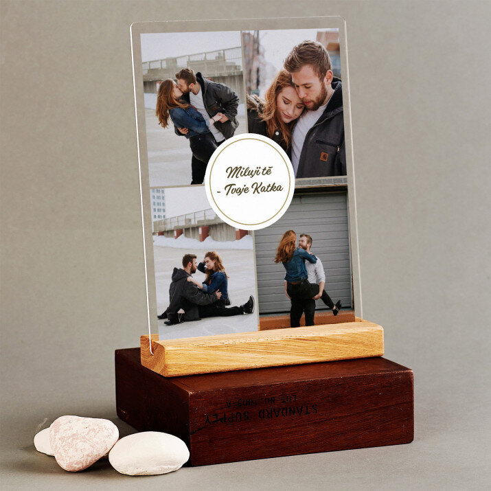 Výjimečná památka, která potěší obdarovaného! Tisk na čirém akrylovém skle (plexisklo) tloušťky 2 mm je dárek, který bude dělat radost dlouhá léta. Produkt je vyroben z vysoce kvalitních materiálů a je odolný proti poškození nebo povětrnostním vlivům. Díky elegantnímu dřevěnému stojanu můžete umístit tisk na polici. Takový barevný dárek s unikátním gravírováním bude samozřejmě skvělým překvapením!Nabízíme různé varianty tohoto tisku: