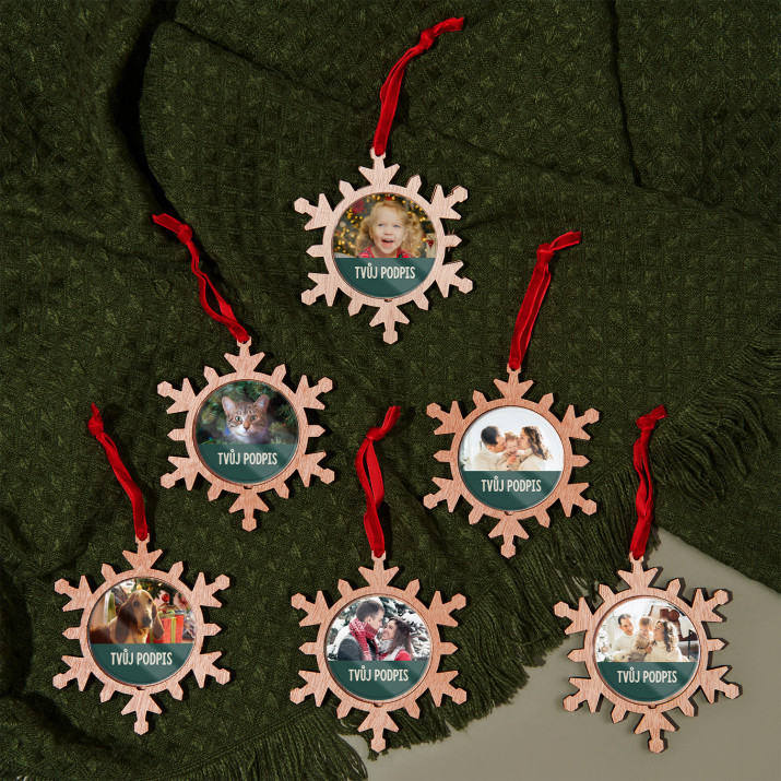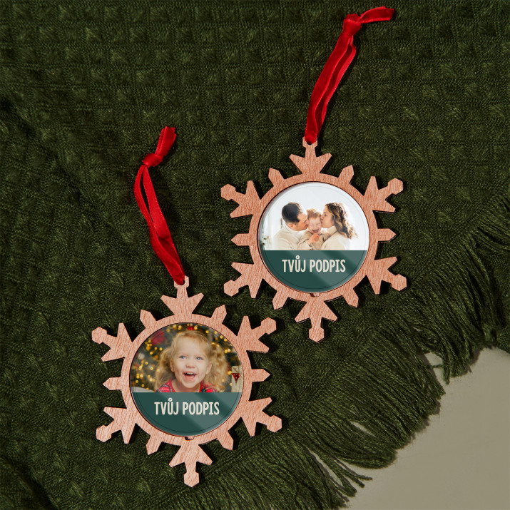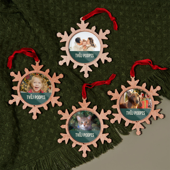 Pociťte kouzlo Vánoc a pověste si jedinečnou fotografii na vánoční stromeček! Ozdoba ve tvaru sněhové vločky je originální nápad na dekoraci vánočního stromečku. Vločka bude vypadat krásně mezi klasickými baňkami a barevnými řetězy. Překvapte blízkou osobu a darujte jí takovou dřevěnou ozdobu k příležitosti první společné oslavy Vánoc. Ozdobu můžete objednat ve čtyřech variantách: 1, 2, 4 nebo 6 kusů.Podrobné informace: