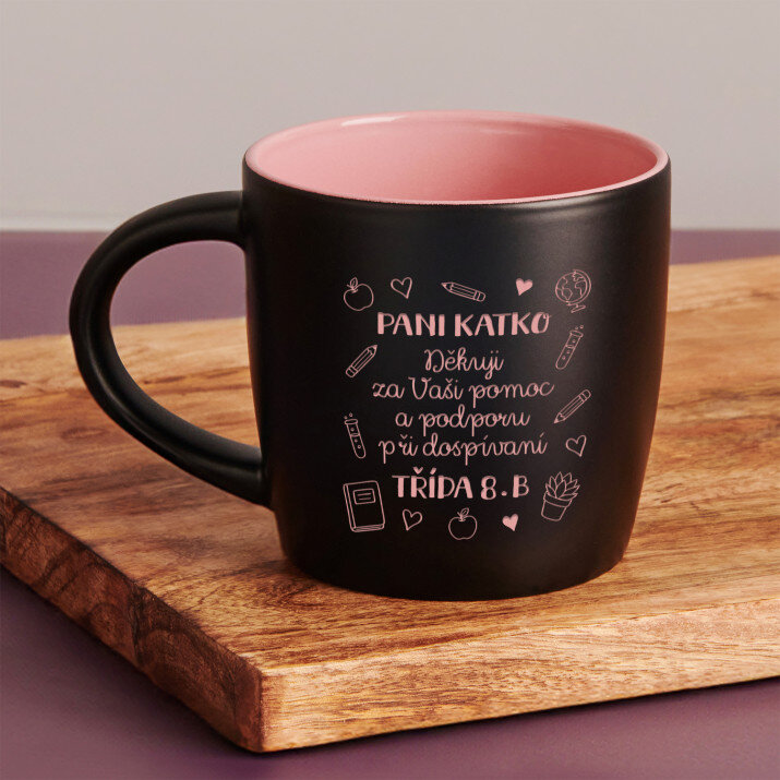 Stylový keramický hrnek s jedinečným potiskem. Díky vysoké kvalitě zpracování a elegantnímu provedení je ideálním dárkem pro mnoho příležitostí. Hrnek je k dispozici v černé barvě s jedinečným červeným vnitřkem.Rozměry: objem cca 290 ml, výška 85 mm.