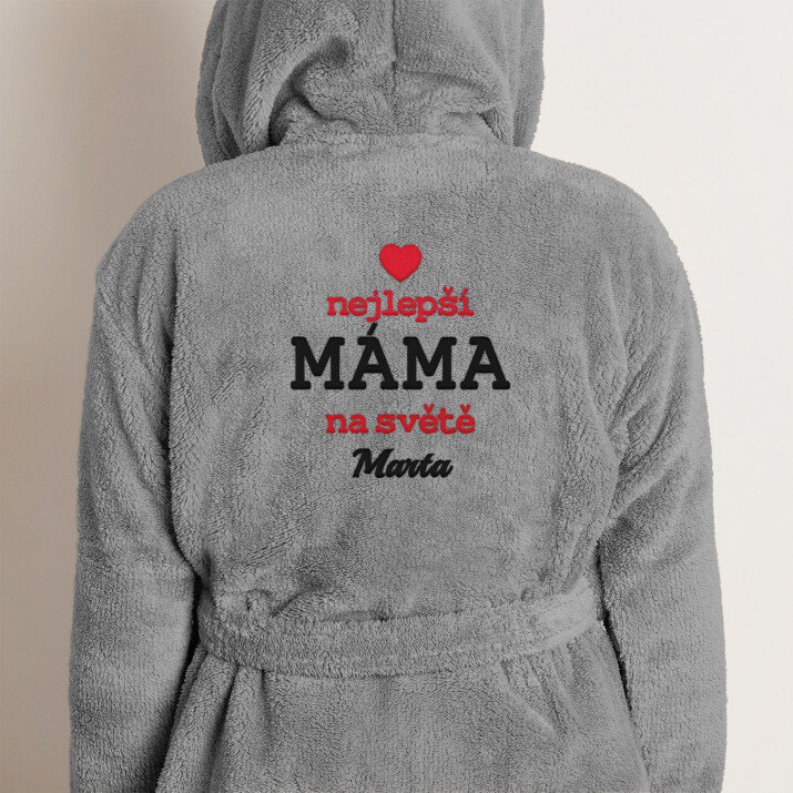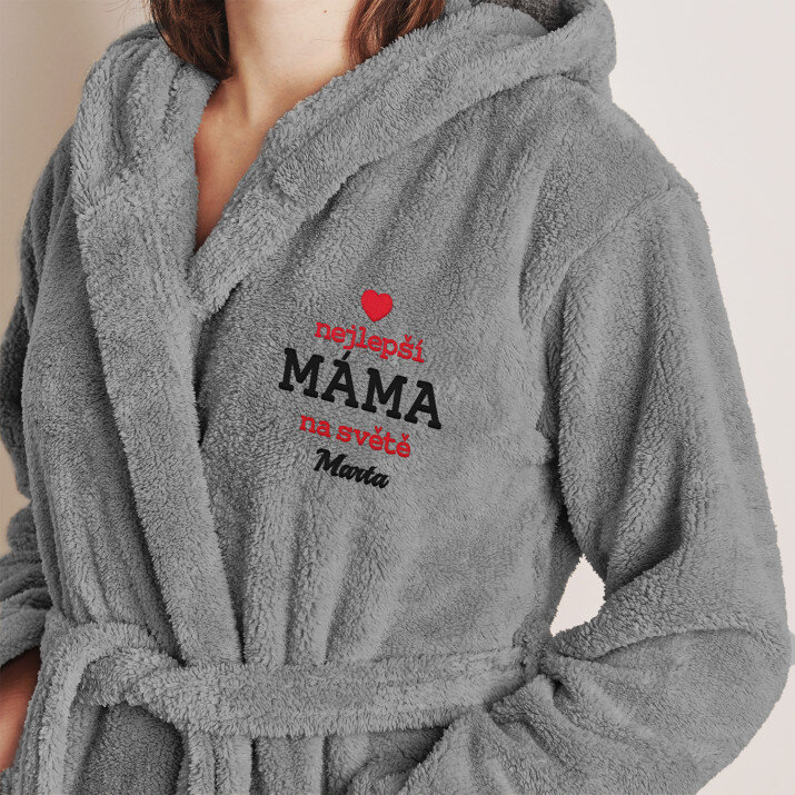 Univerzální fleecový župan v šedé barvě je vyroben ze 100% polyesteru wellsoft. Pohodlný, hezký, heboučký - zajistí dokonalý komfort, když už budou všechny starosti dne budou pryč a přijde čas na relax. Příjemně zahřeje i rozespalé tělo hned po probuzení. Župan je zdoben personalizovanou výšivkou, která nejen činí z výrobku perfektní dárek, ale také pěkně vypadá a dokáže zvednout náladu nositele.Župan má elegantní střih s kapuci a kapsami, tak bude ideální na večerní módní prohlídku domácího oblečení. Univerzální velikost, gramáž 300 g/m2. Unisex.