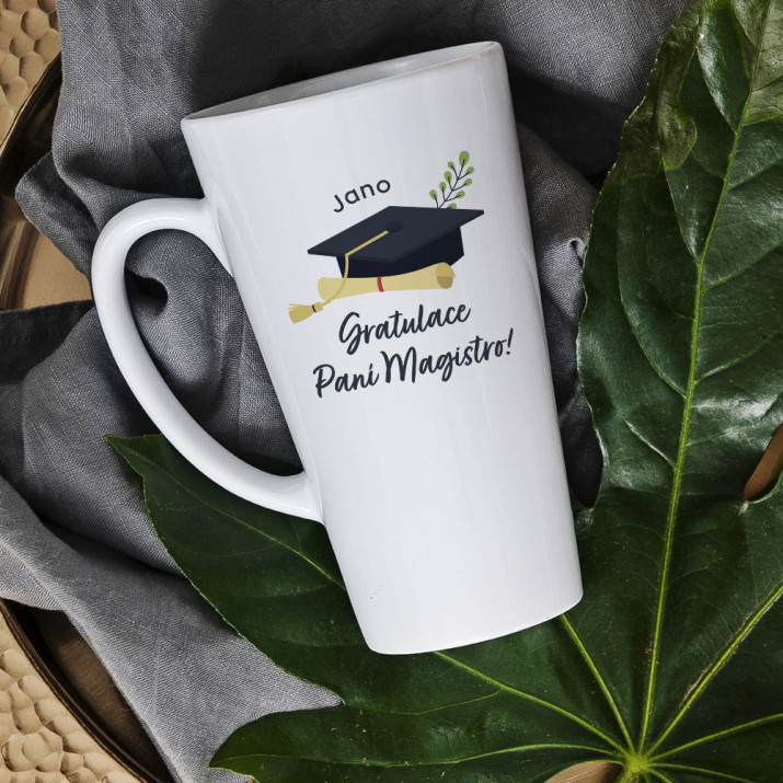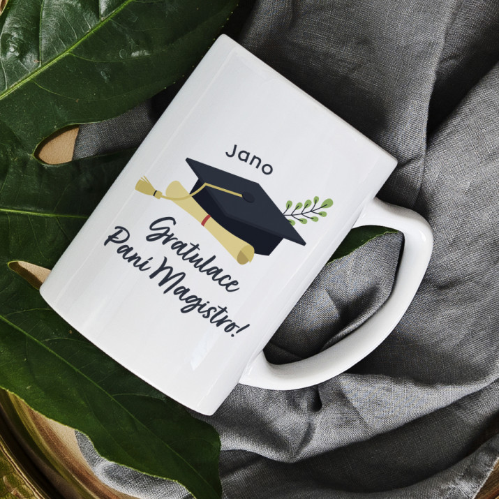 Tento personalizovaný hrnek 'Gratulace, paní magistře' je skvělým dárkem pro absolventku. Personalizace a kvalita provedení jsou ohromující.