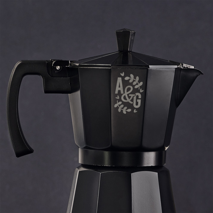 Černá moka konvice vyrobena z hliníku je dokonalým doplňkem kuchyně a bude skvělým dárkem pro všechny milovníky kávy. Vysoce kvalitní materiály a pevná konstrukce zajišťují pohodlné používání po dlouhou dobu a personalizované gravírování na černém povrchu dodává produktu jedinečný charakter.Díky konvičce velmi snadno připravíte lahodnou kávu! Spodní část je nádoba na vodu, v horní části se při vaření shromažďuje hotová káva. Mezi nimi je sítko na mletou kávu a gumové těsnění. Káva vzniká v důsledku tlaku generovaného ve spodní nádobě během vaření.