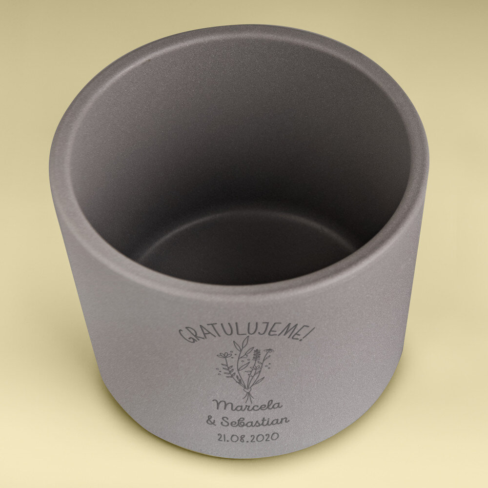 Keramický obal na květináč v šedé barvě působí velmi elegantně a svou moderní formou okouzlí i ty nejnáročnější! Obal je vodotěsný a ideálně se hodí pro různé druhy rostlin. Personalizace na obalu z něj udělá ještě osobnější dárek!