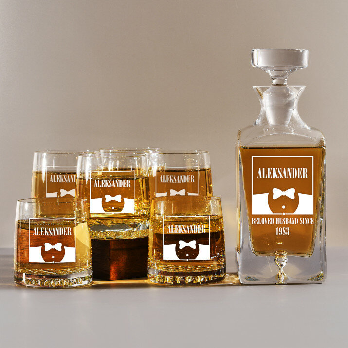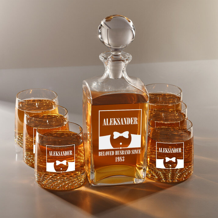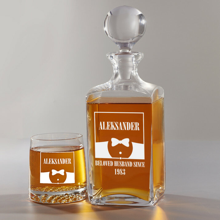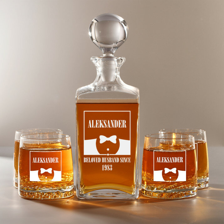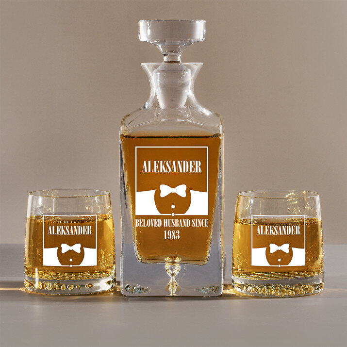 Gravírovanou sadu s karafou a sklenicemi nabízíme ve čtyřech variantách::Karafa + 1 sklenice