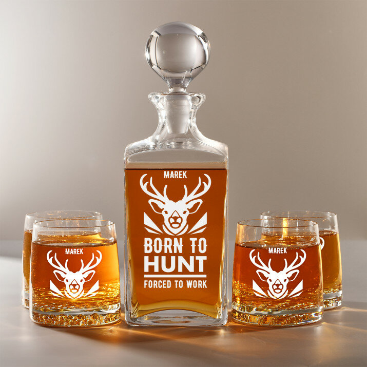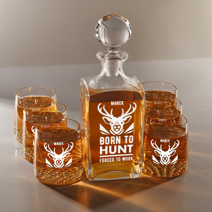 Gravírovanou sadu s karafou a sklenicemi nabízíme ve čtyřech variantách::Karafa + 1 sklenice