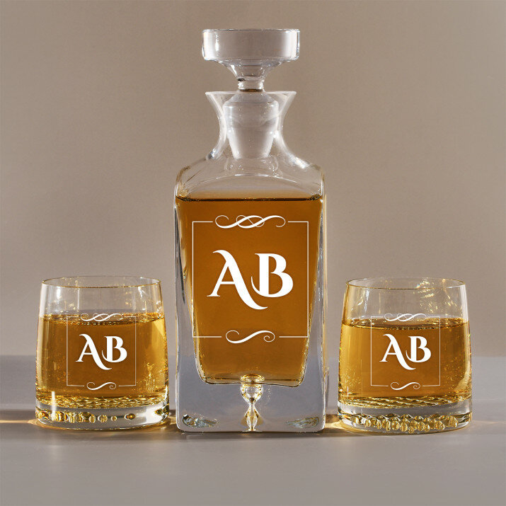 Gravírovanou sadu s karafou a sklenicemi nabízíme ve čtyřech variantách::Karafa + 1 sklenice