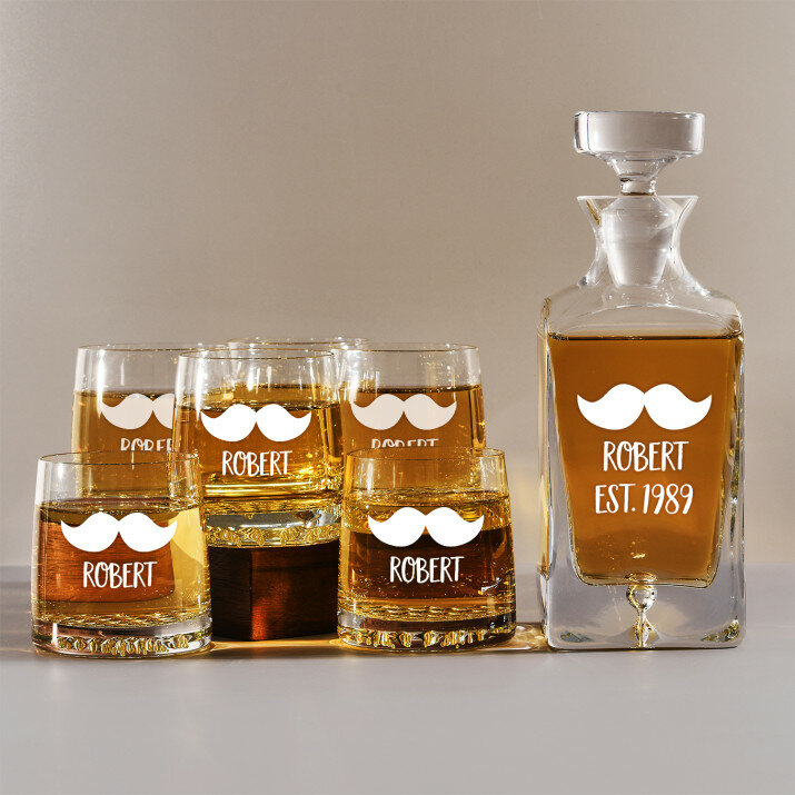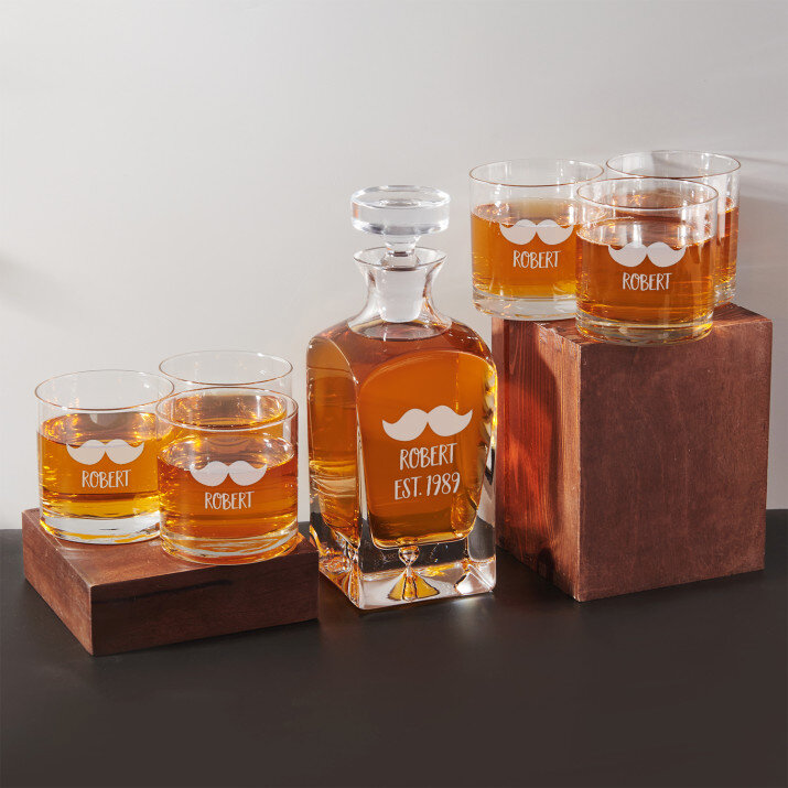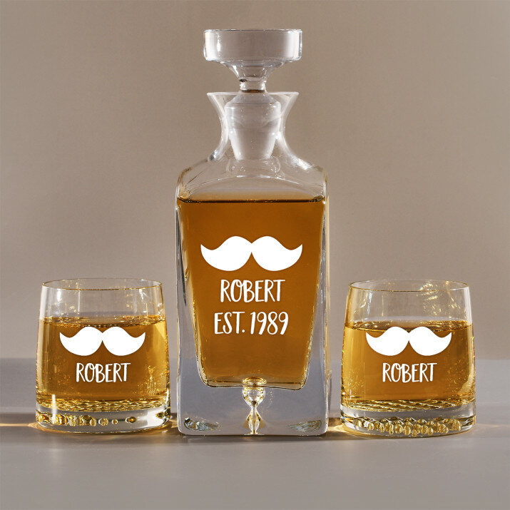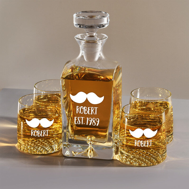 Gravírovanou sadu s karafou a sklenicemi nabízíme ve čtyřech variantách::Karafa + 1 sklenice