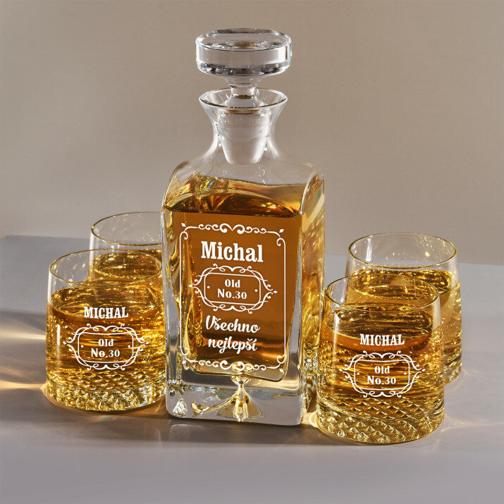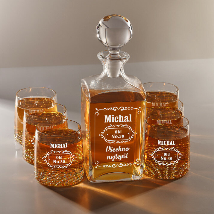 Gravírovanou sadu s karafou a sklenicemi nabízíme ve čtyřech variantách::Karafa + 1 sklenice