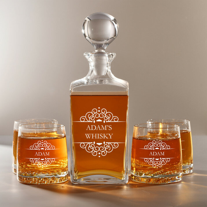 Gravírovanou sadu s karafou a sklenicemi nabízíme ve čtyřech variantách::Karafa + 1 sklenice