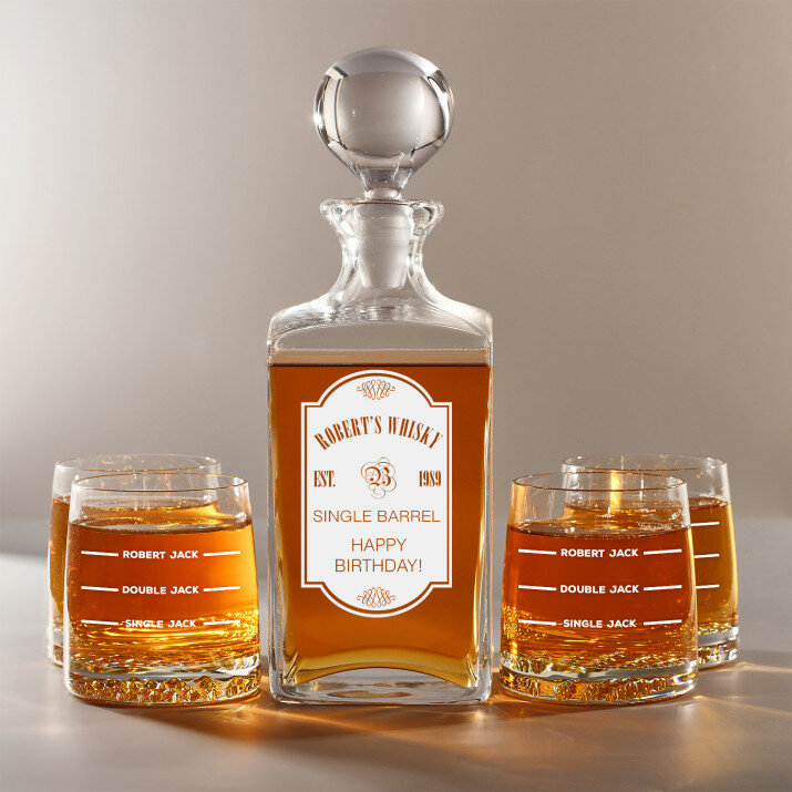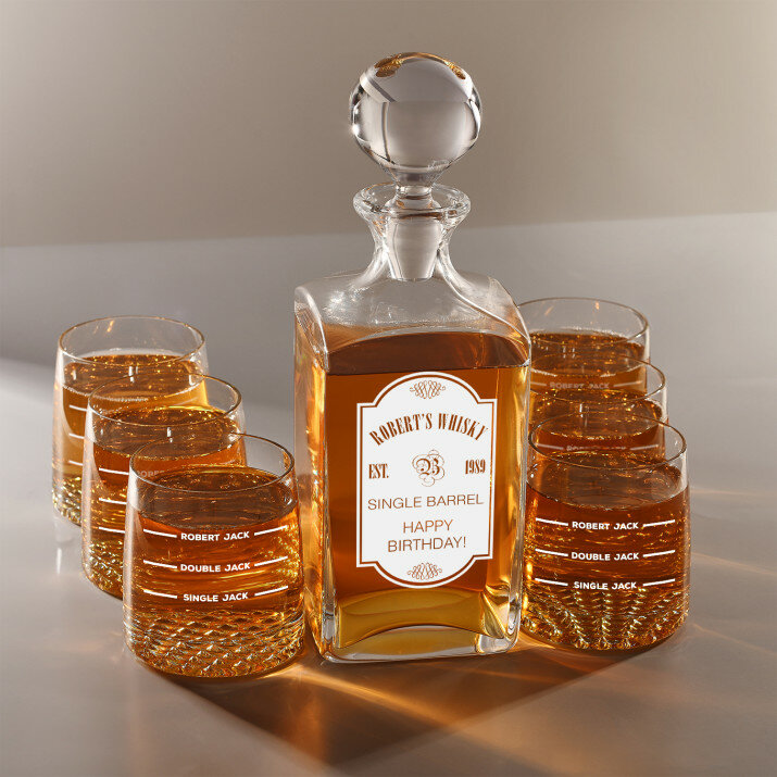 Gravírovanou sadu s karafou a sklenicemi nabízíme ve čtyřech variantách::Karafa + 1 sklenice