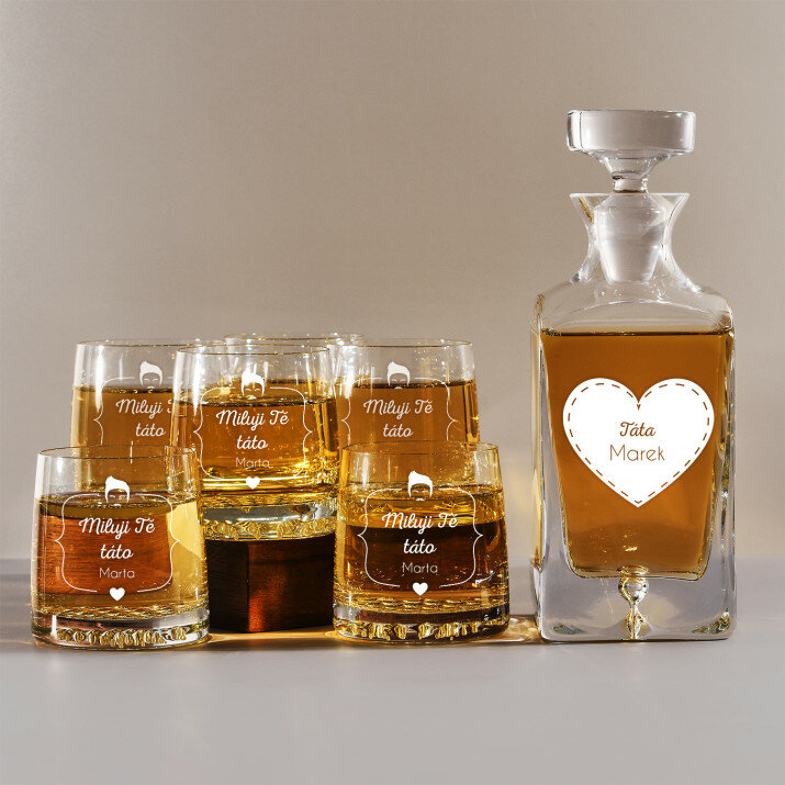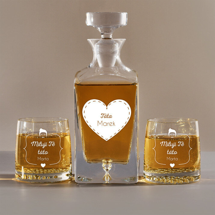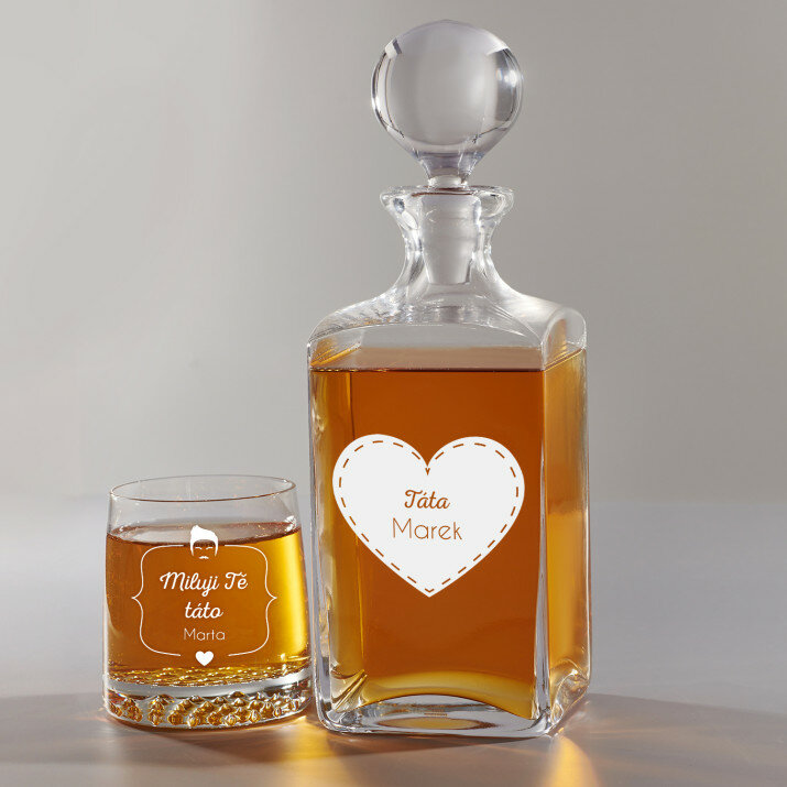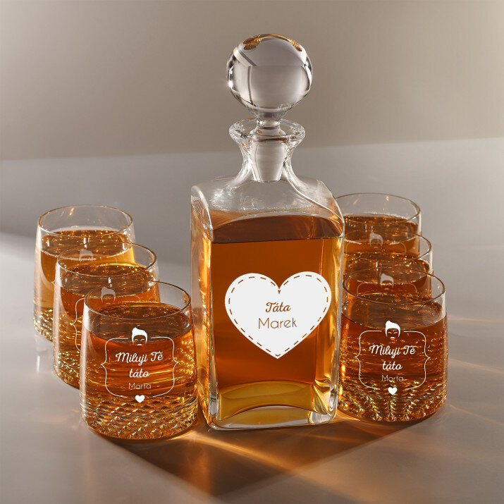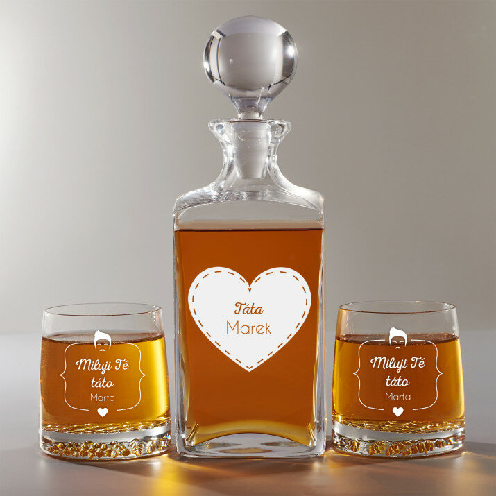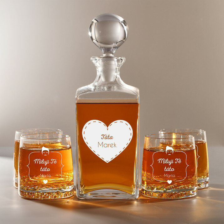 Gravírovanou sadu s karafou a sklenicemi nabízíme ve čtyřech variantách::Karafa + 1 sklenice