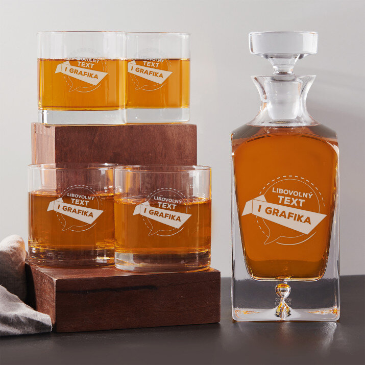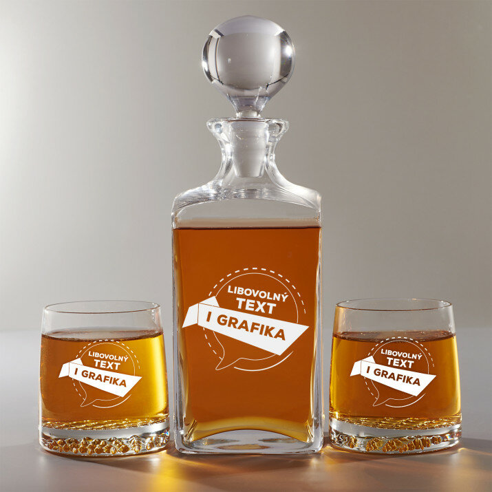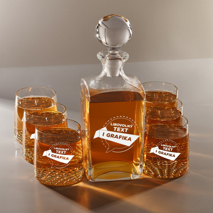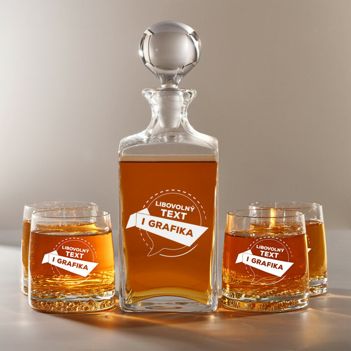 Gravírovanou sadu s karafou a sklenicemi nabízíme ve čtyřech variantách::Karafa + 1 sklenice