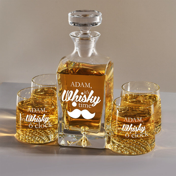 Gravírovanou sadu s karafou a sklenicemi nabízíme ve čtyřech variantách::Karafa + 1 sklenice