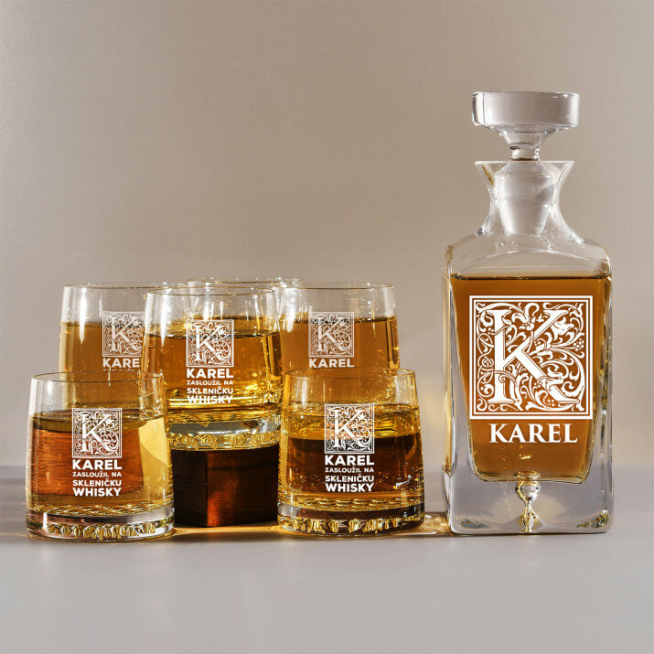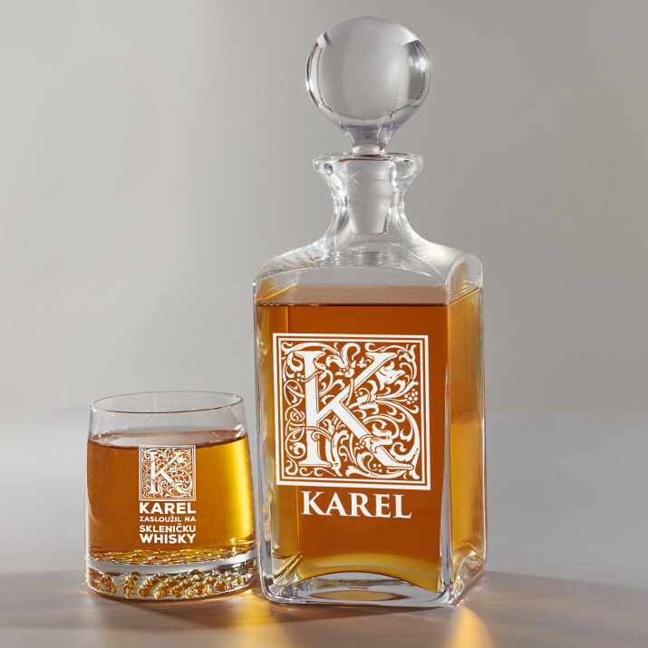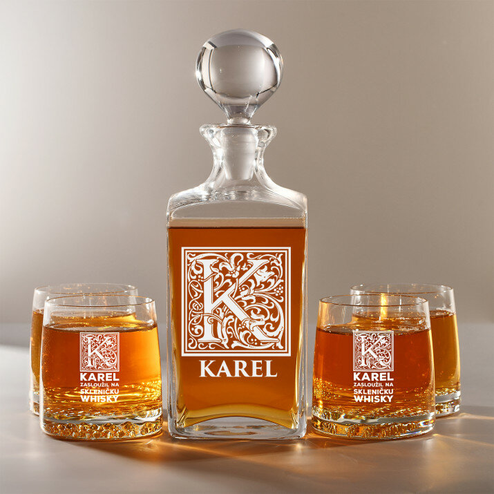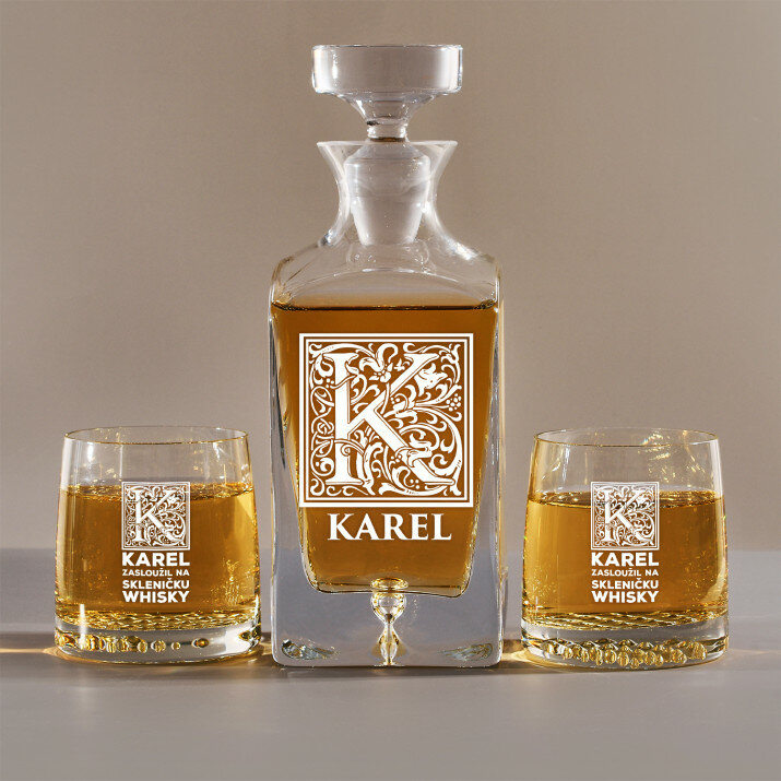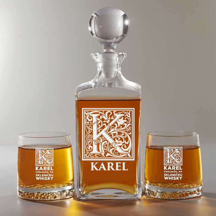 Gravírovanou sadu s karafou a sklenicemi nabízíme ve čtyřech variantách::Karafa + 1 sklenice