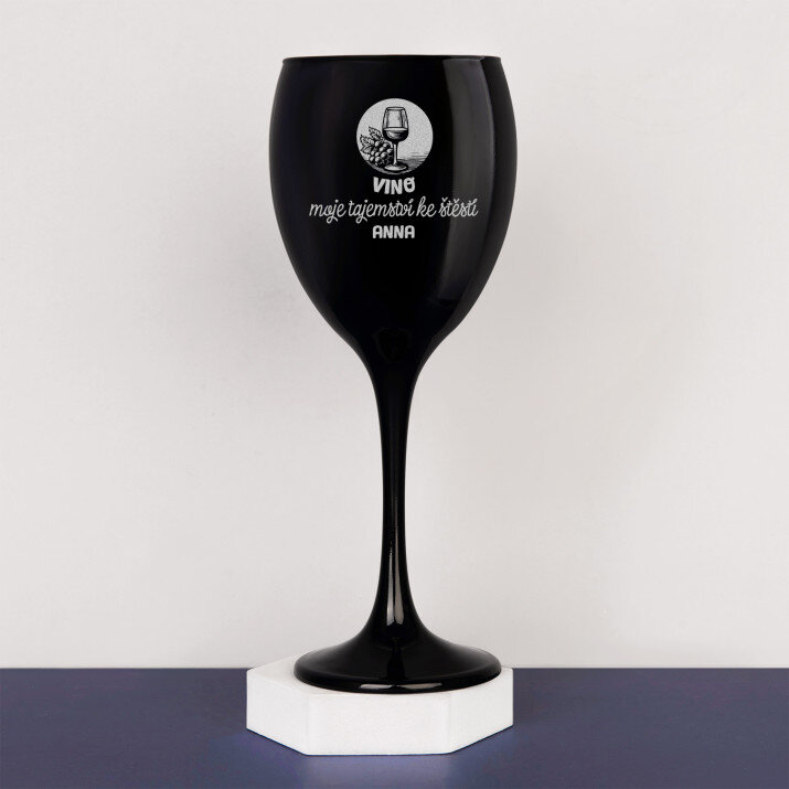 Černá sklenice na víno je skvělým nápadem na dárek pro každého fanouška moderního interiérového designu! Originální barevné provedení a vysoce lesklé sklo na sebe strhává pozornost a podtrhuje jedinečnou atmosféru výrobku. Klasický tvar se bude skvěle hodit k jakémukoli nádobí a dekoraci stolu. Sklenici lze mýt v myčce, což jistě usnadní úklid po atmosférické večeři. Nebude na ní chybět personalizované gravírování, díky čemuž se stane jedinečným dárkem pro někoho blízkého!Podrobnosti: